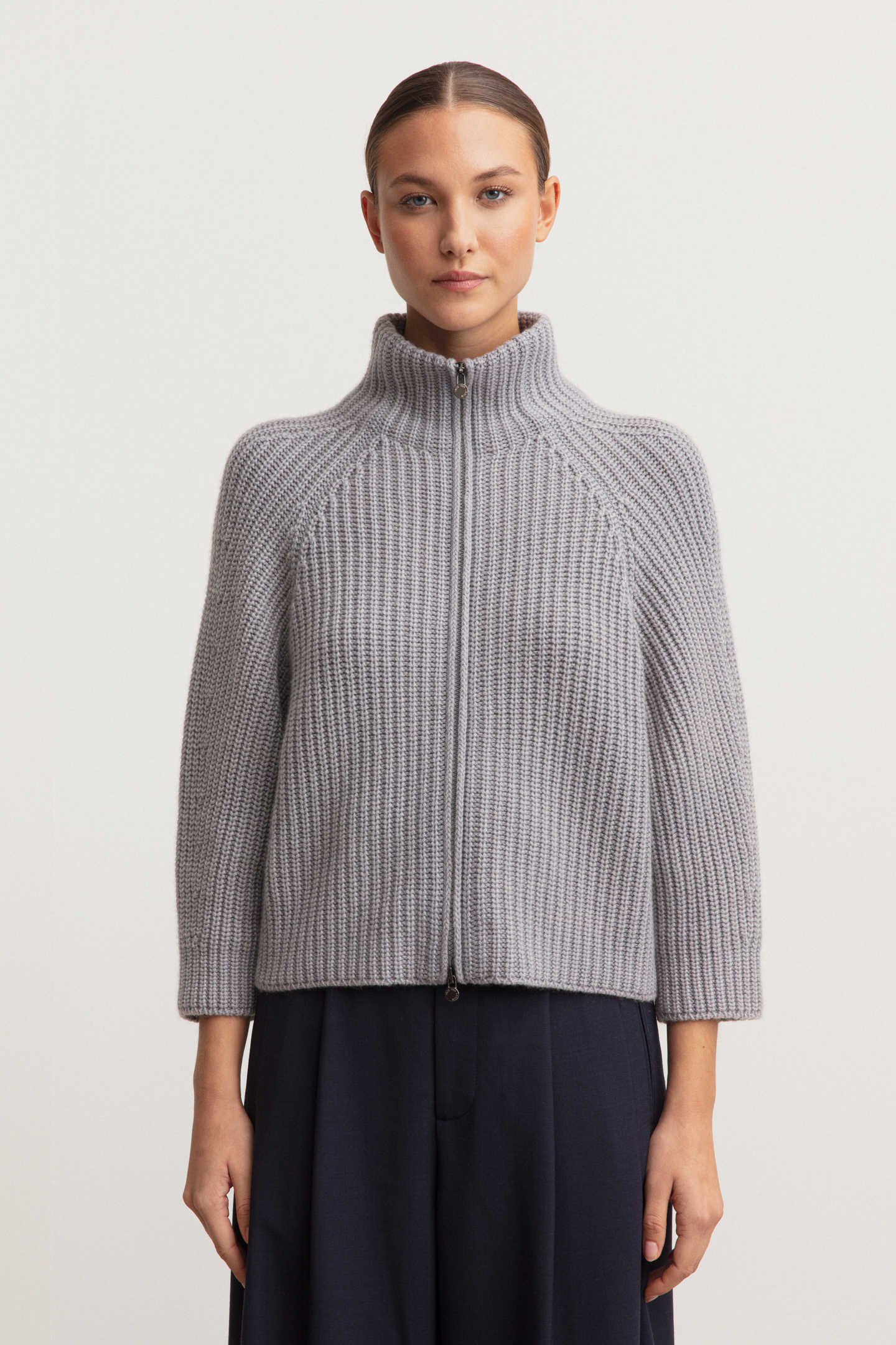 Unsere exklusiven Stonewashed-Farbkreationen werden in einem Familienbetrieb in Italien gefertigt. Ein einzigartiger Wasch- und Färbeprozess lässt die Farben subtiler und tiefer, den Strick dimensionaler und Strukturen erhabener wirken.*Stehkragen