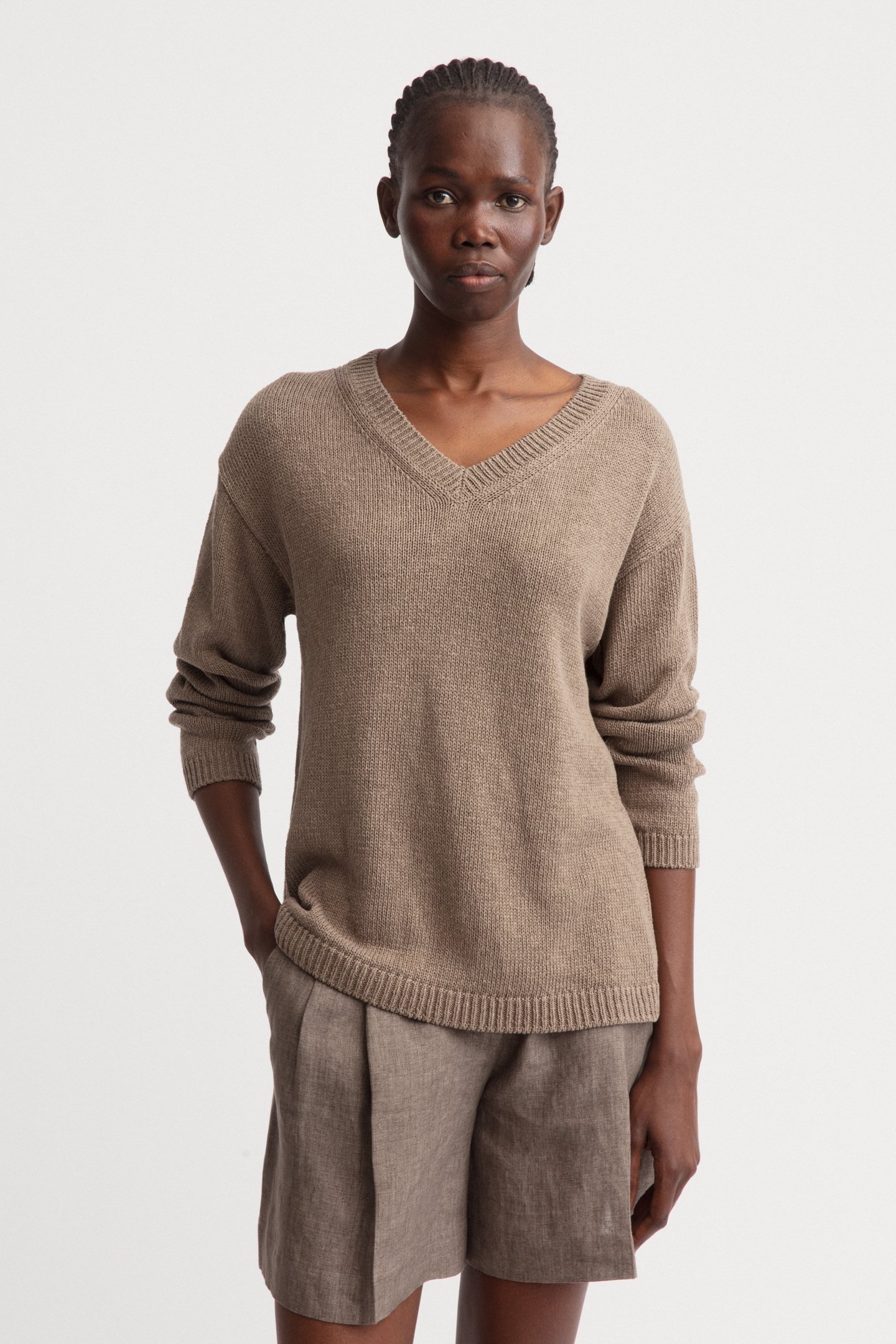 - Gerippte Abschlüsse an Kragen, Ärmeln und Saum