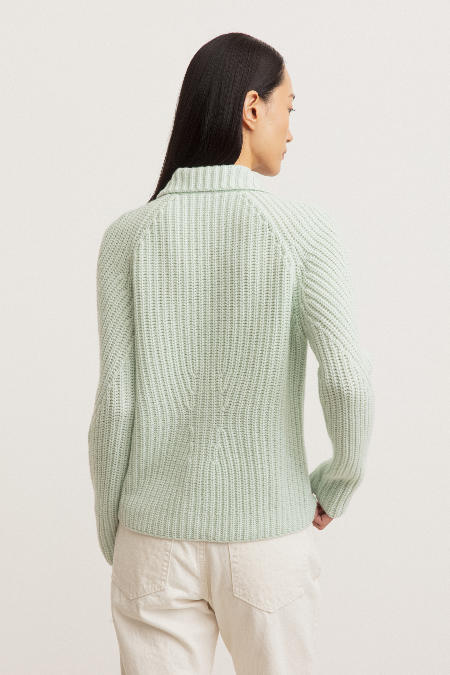 Unsere exklusiven Stonewashed-Farbkreationen werden in einem Familienbetrieb in Italien gefertigt. Ein einzigartiger Wasch- und Färbeprozess lässt die Farben subtiler und tiefer, den Strick dimensionaler und Strukturen erhabener wirken.