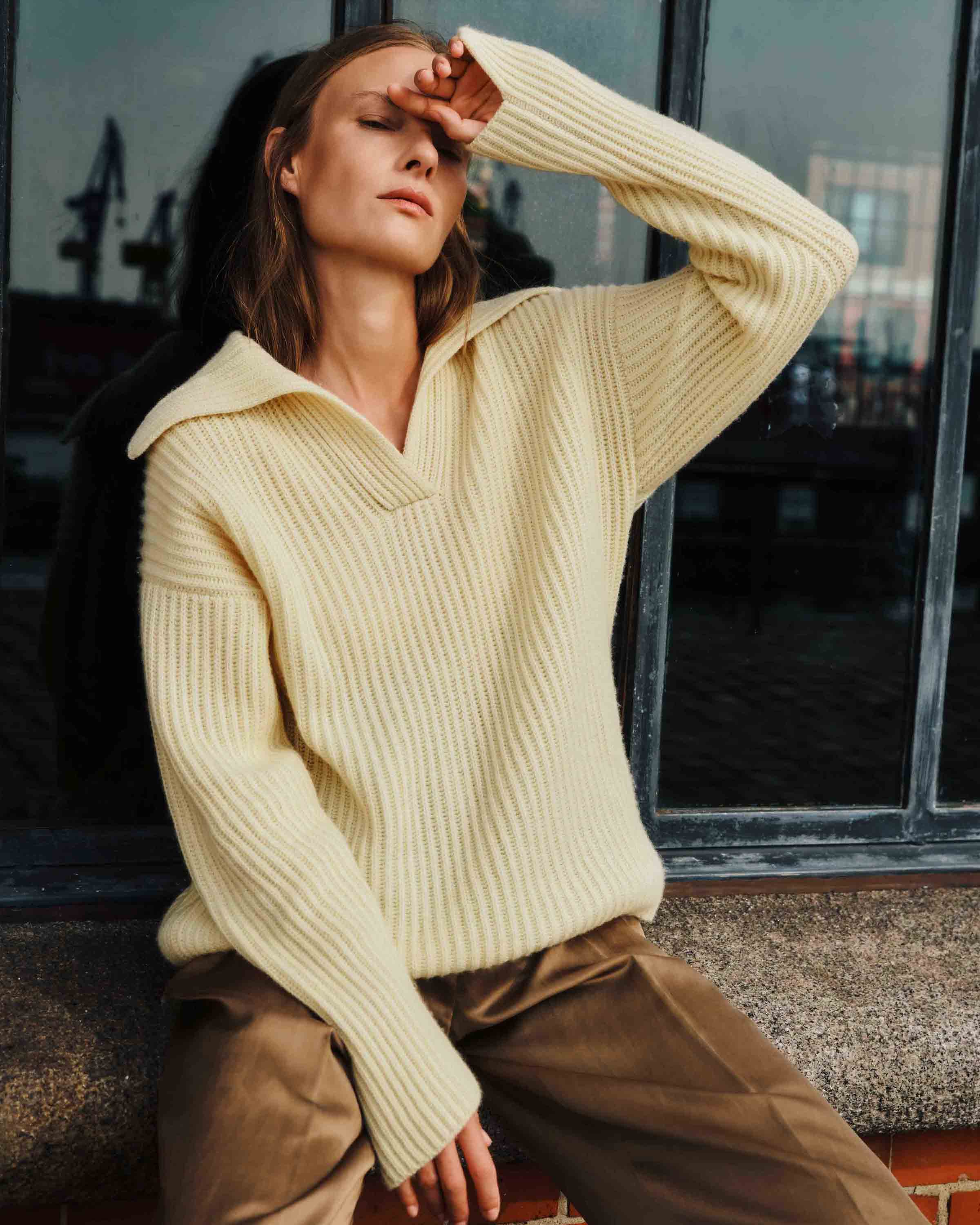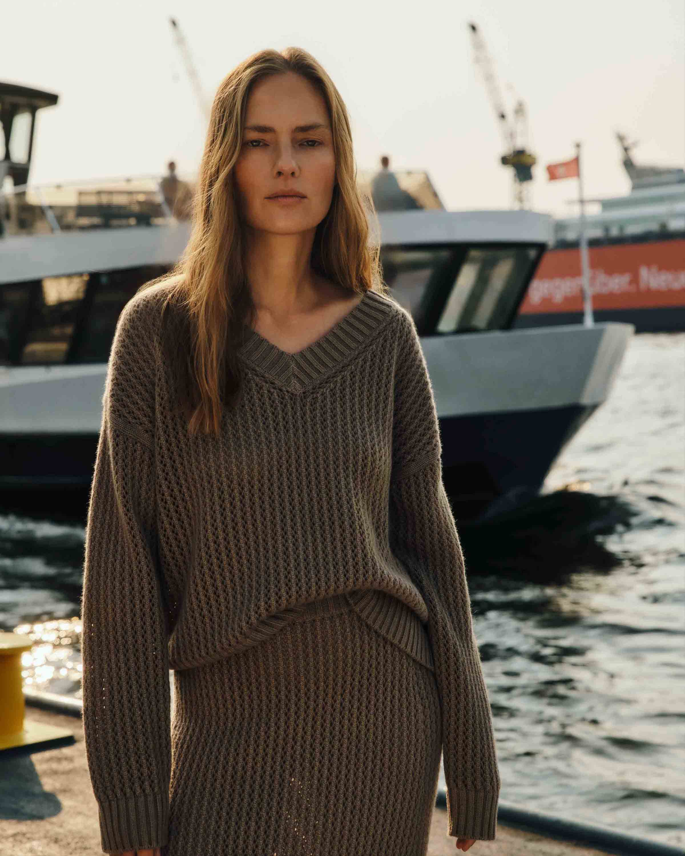 The collection takes the maritime elegance and urban charm of the port of Hamburg as inspiration and sets new color accents. The shades of almond and vanilla reflect the unique atmosphere of the city and combine the relaxed luxury of cashmere with the stylish lightness of Hamburg.