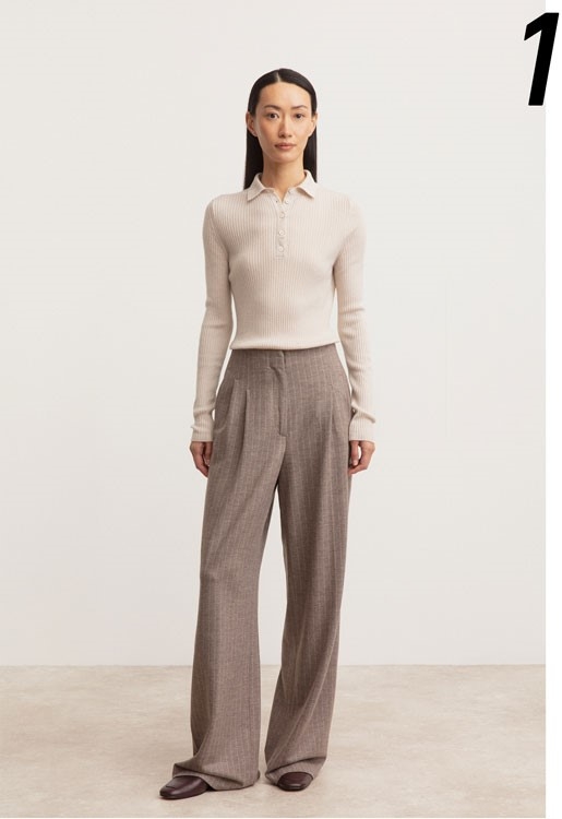 "A perfect evergreen for every day that will look great with anything in your wardrobe. The sweater LAGERTHA with a polo neck is designed to be worn forever. For an effortlessly elegant look, we combine the pleated trousers LAINIE PINSTRIPES."