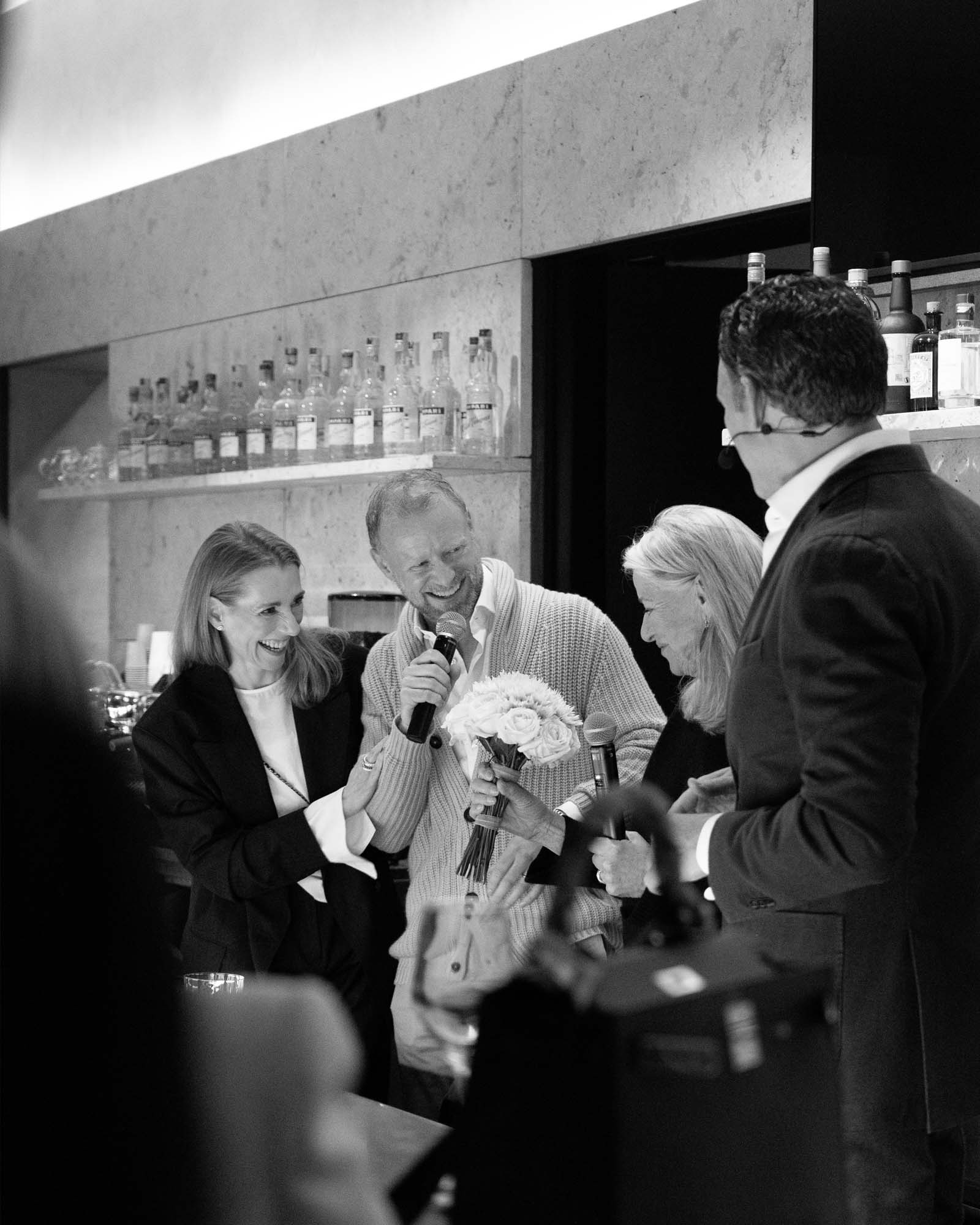 Markus Höhn, geschäftsführender Gesellschafter von LODENFREY und Iris und Valentin von Arnim hatten zu einem lockeren Event mit Flying Dinner und Drinks in die Schumanns Tagesbar geladen. Beim Fashion Talk verriet die Designerin, dass sie in den frühen siebziger Jahren in München lebte und auf der Suche nach ihrer Berufung unter anderem als Journalistin und Fotografin tätig war. Nach einem schweren Autounfall verbringt sie einige Monate im Krankenhaus und entdeckt dort das Strickhandwerk für sich. Aus einem Zeitvertreib wird eine Businessidee. 1976 gründet die Designerin ihr gleichnamiges Unternehmen in Hamburg. Aus dieser besonderen Unternehmensgeschichte zieht Iris von Arnim auch heute die unerschöpfliche Inspiration für ihre Arbeit. Mit dem kreativen Herzen in Hamburg interpretiert Iris von Arnim seit über 45 Jahren den Zeitgeist in Form von Cashmere und hochwertigem Strick: Luxury Knitwear für heute und morgen – zeitlos, langlebig, pur. Heute ist das Familienunternehmen eine der wenigen inhabergeführten Luxusmarken in Deutschland, die international erfolgreich sind.