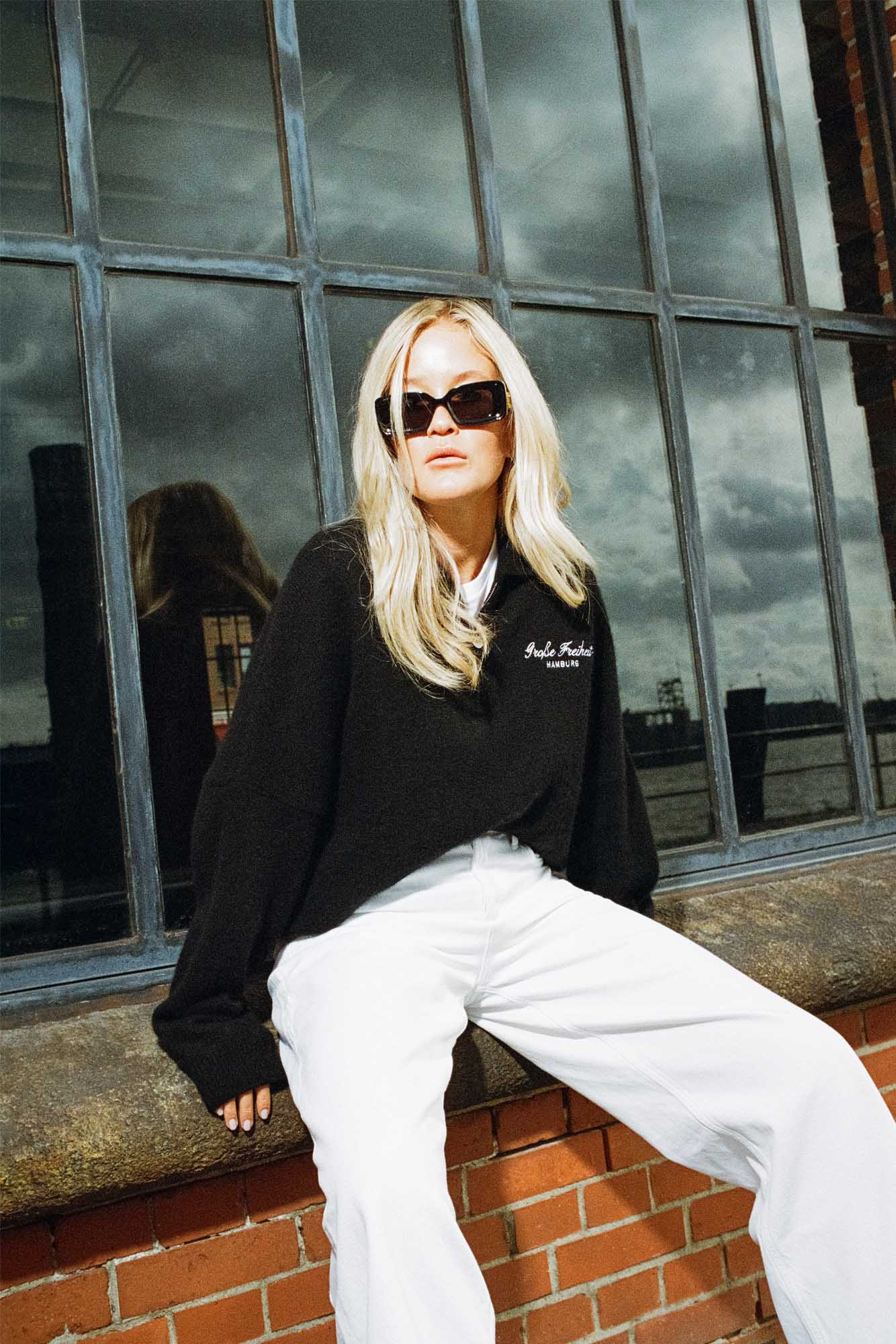Die Leidenschaft wollen sie über die Grenzen von Hamburg hinweg zeigen. Dafür haben sie die dänische Influencerin Josefine Haaning Jensen nach Hamburg eingeladen, ihre Lieblingsstadt zu entdecken. Im „Große Freiheit“ Pullover erkundet sie die Hansestadt von der Alster über das Iris von Arnim Headquarter im Frauenthal und Unger am Neuen Wall bis hin zum Hafen.