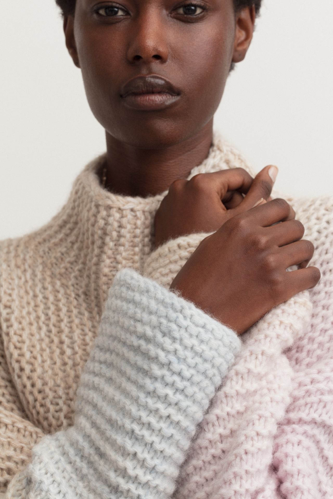 Strick in Regenbogenfarben zieht sich wie ein roter Faden durch Iris von Arnims Leben. Mit dem Regenbogenpullover hat alles angefangen. Über die Jahre wurde das beliebte Ursprungsmodell in verschiedenen Variationen und Farbkombinationen neu aufgelegt. In der Pre Fall 2024 Kollektion ist der ikonische Pullover als Pastell Rainbow aus einer Cashmere-Seide Mischung in Blau-Alabaster- Rose Degradé neu interpretiert.