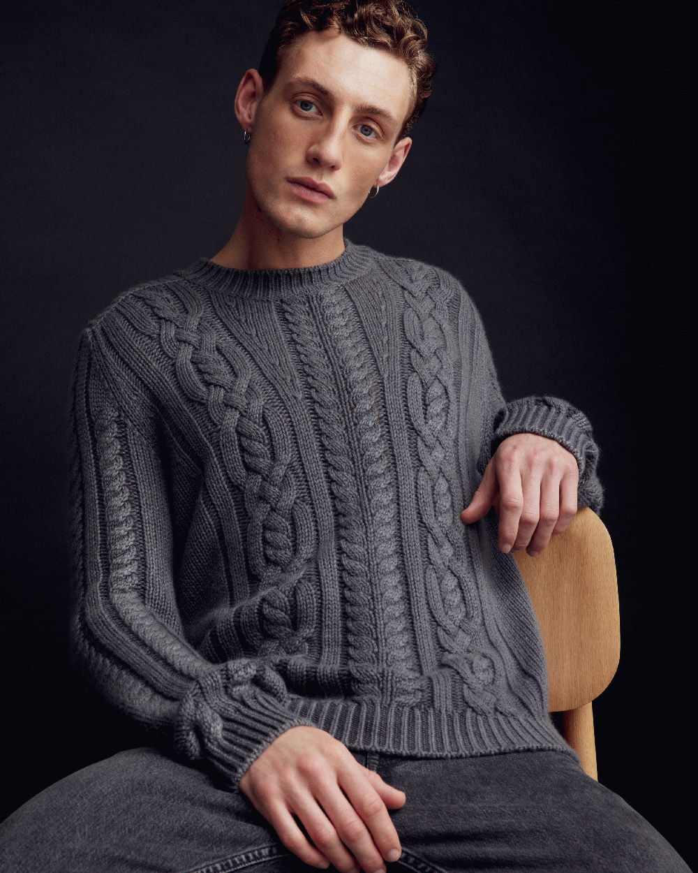 The collection includes the cable-knit sweater OVENIUS in Dark Smoke and Midnight Sky, the cable-knit cardigan ODINIUS in Brick, Cerulean and Walnut and the troyer MILAN in Brick, Cerulean, Midnight Sky and Malachite as well as the cable knit beanie CADAMUS in Dark Smoke and Midnight Sky.